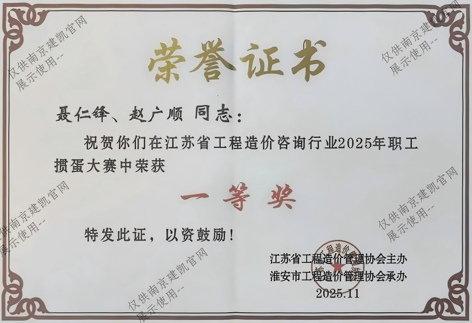 热烈祝贺我司在江苏省工程造价咨询行业2025年职工掼蛋大赛中荣获一等奖